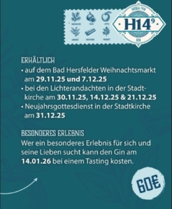 SAFE THE DATE! Gin Tasting der Ev. Stadt- und Johanneskirchengemeinde am 14. Januar 2026 im Martin-Luther-Haus, Kirchplatz 4 mit Vikarin Teresa Bickert